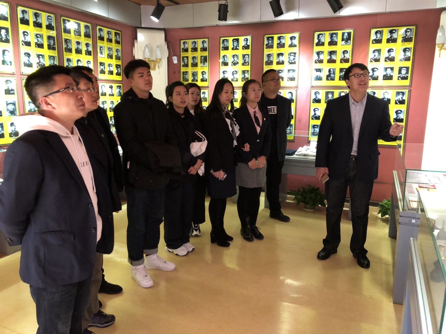 在学院党支部书记张晓霖的带领下共同学习解放军革命前辈的精神和爱国思想。从这里我们能了解近代中国历经磨难的风雨沧桑,感受了中国共产党成长壮大的曲折历程,也明白了中国人民前赴后继英勇抗争的热血豪情。
