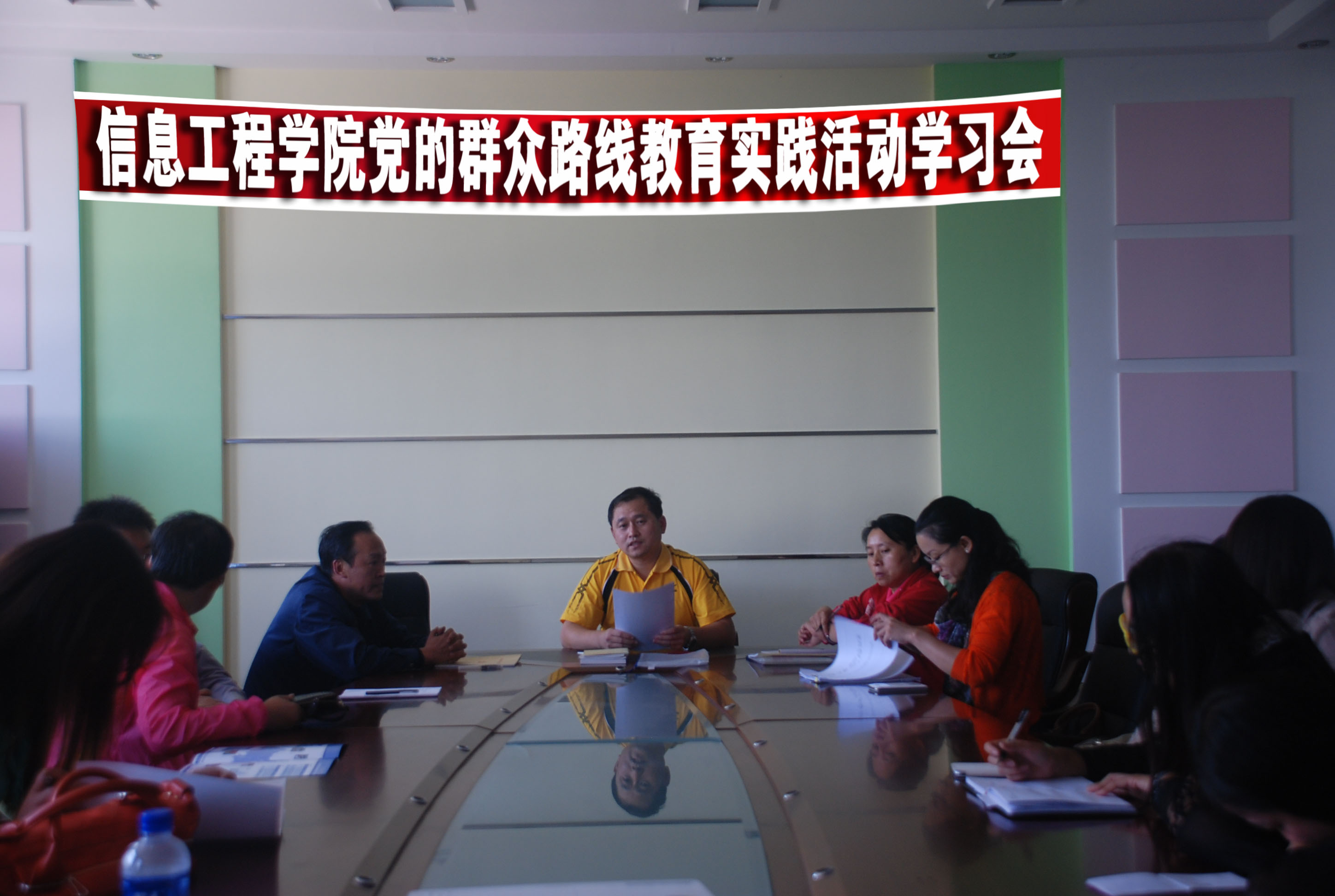 9月4日,信息工程学院召开学习“党的群众路线教育实践活动”会议,会议由信息工程学院党总支书记金忠伟主持,信息工程学院教学副院长高金华、学管副院长王福胜以及全体党员、教师参加了本次学习。