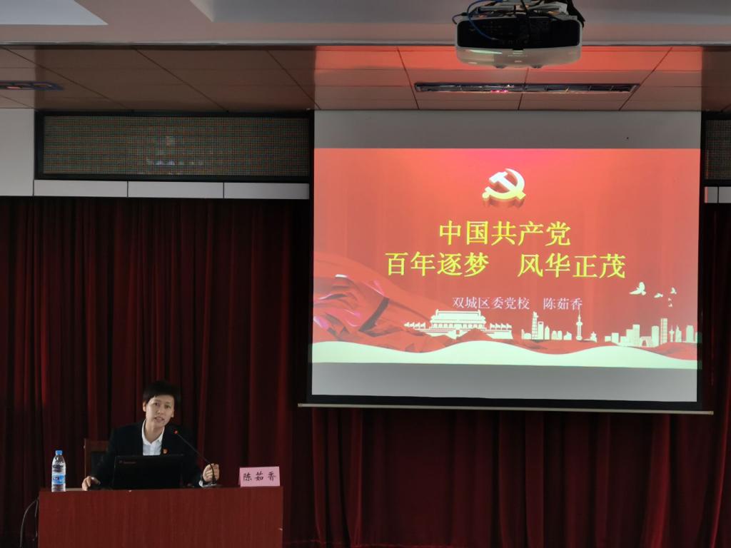 本次主题党日活动由教学支部书记卢凤伟主持。本次主题党日特邀双城区委党校党史教育专家陈茹香老师为全体与会者带来《百年筑梦,风华正茂》为主题的党史专题讲座,从党史教育对大学生理想信念教育的重要意义、中国共产党百年奋斗的发展历程和中国共产党百年奋斗的经验启示三个方面进行了深入讲解,陈老师的讲座富有激情、内容精彩,引起与会者共鸣。最后,党总支书记王文焕,发表重要讲话,号召全体党员干部要学史明理、学史力行,扎根教育事业,守初心、担使命,为推动学校发展,不懈努力!