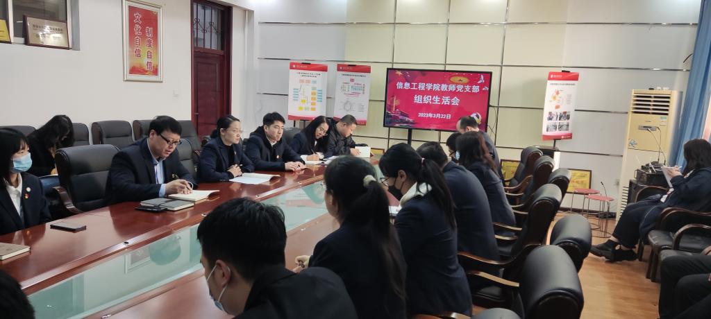 2023年3月22日,信息工程学院教师支部召开2022年度组织生活会。会议由信息工程学院教师支部书记卢凤伟主持,信息工程学院党总支书记金忠伟、院长张晓霖出席出席本次会议,教师党支部全体党员参加了本次会议。