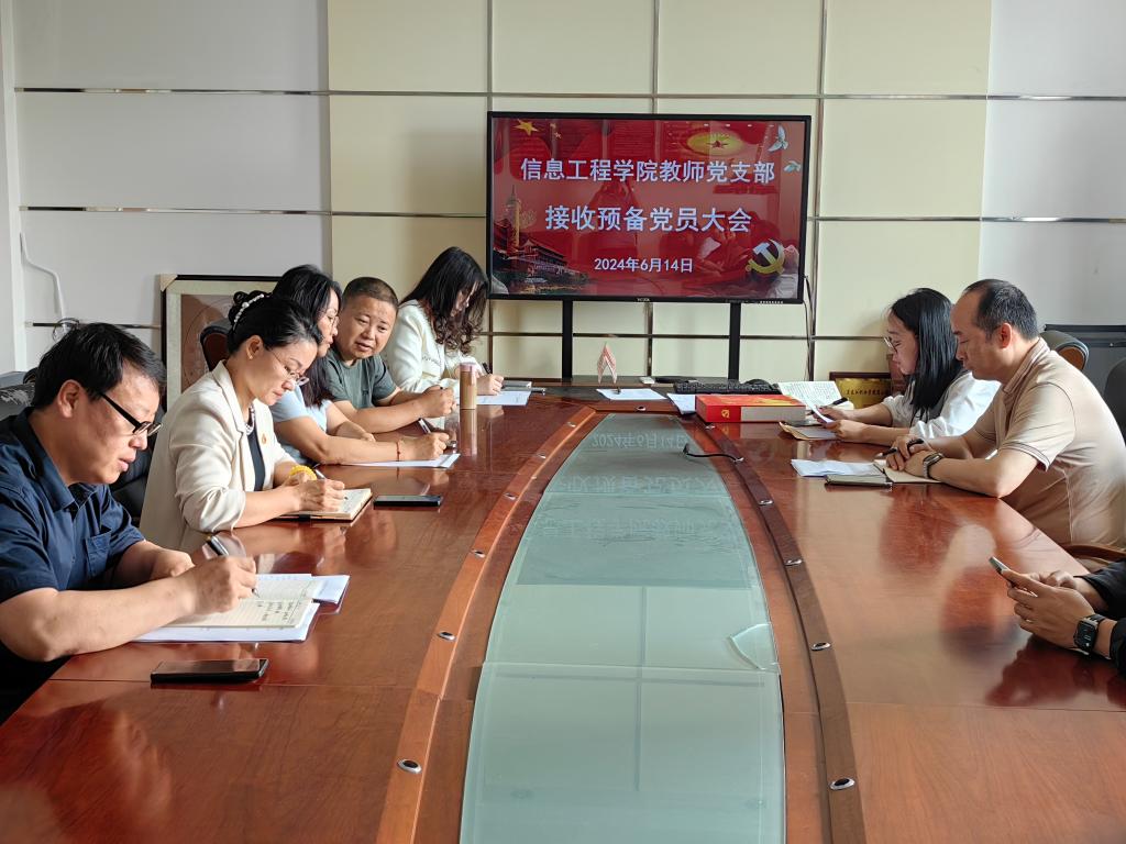 为了进一步加强党员队伍建设,推动党的事业发展,信息工程学院教师党支部于2024年6月14日在二教511召开接收预备党员大会。会议由支部书记卢凤伟同志主持,支部全体党员和入党积极分子参加了此次会议。