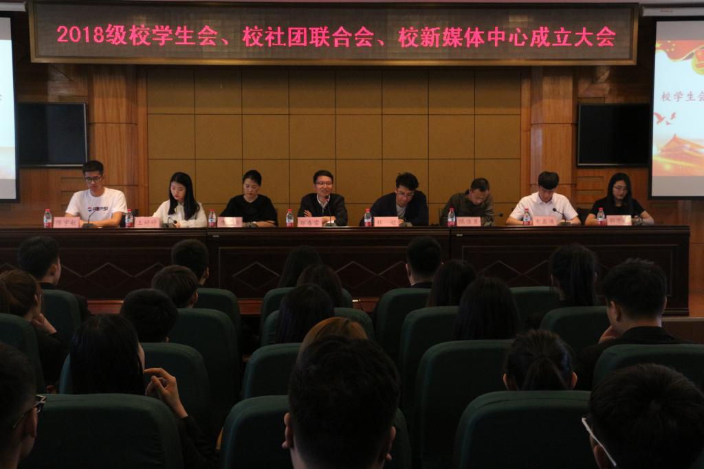 校团委召开2018级校学生会、校社团联合会、 校新媒体中心成立大会