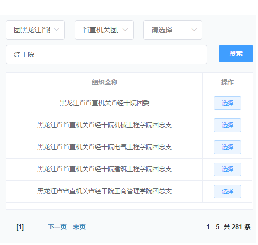 (5) 选择“黑龙江省省直机关省经干院团委”