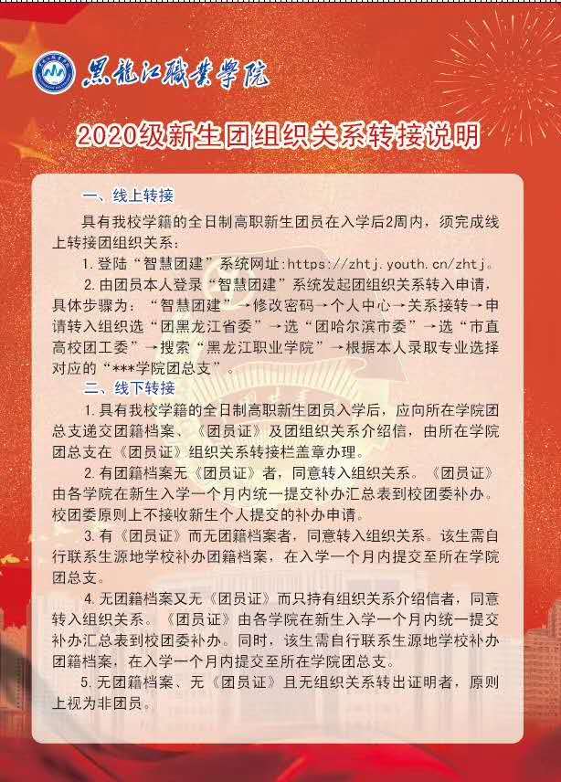 1.具有永利官网学籍的全日制高职新生团员入学后,应向所在学院团总支递交团籍档案、《团员证》及团组织关系介绍信,由所在学院团总支在《团员证》组织关系转接栏盖章办理。