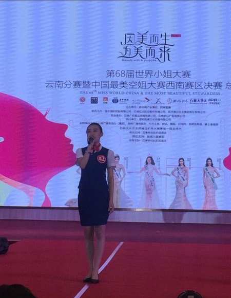 近日,在第68届世界小姐中国大赛云南分赛暨中国最美空姐大赛西南赛区中,学校2016级空乘专业学生董永慧表现优异,一路过关斩将,最终荣获十佳选手荣誉称号。 世界小姐(Miss World)、环球小姐(Miss Universe)及国际小姐(Miss International)选举并称为世界级的三大选美赛事。其中,世界小姐大赛始于1951年,是全球历史最悠久、影响力最盛、美誉度最高的顶级选美赛事。中国最美空姐大赛作为第68届世界小姐中国大赛的特别赛事,为美丽的航空人实现世界小姐梦想提供了平台,期待龙职空乘学子在追逐梦想中有更出色的表现,为母校争光。