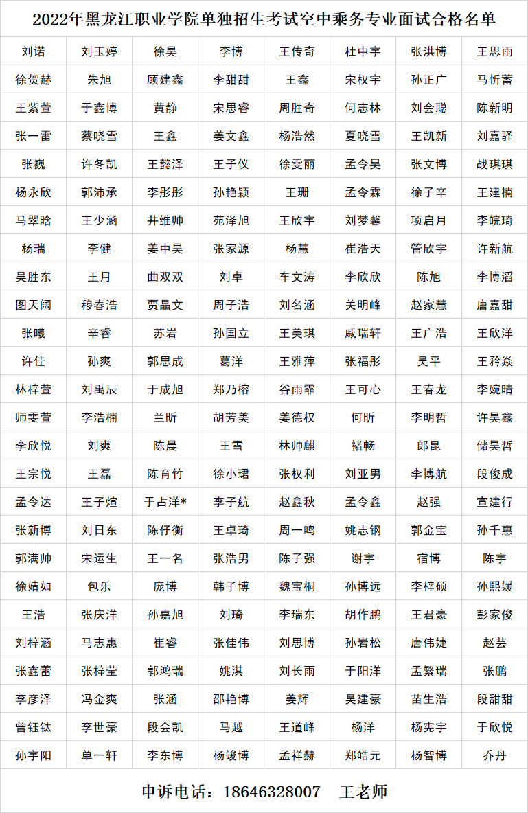 永利集团88304官网2022单招空中乘务专业面试合格名单